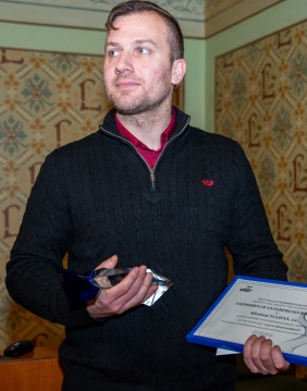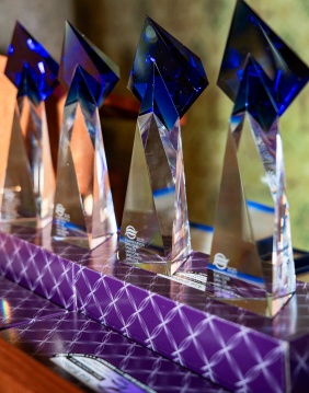Certifikát a trofej v podobě nádherného skleněného "safíru" z dílny Aleše Zvěřiny z Nového Boru převzali za Sdružení TULIPAN provozní ředitelka Renata Remešová a technický manažer Jan Lelek.